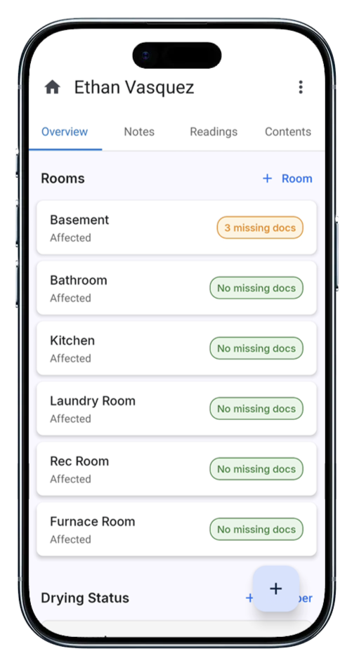 Brighthammer automatically flags missing photos , signatures, or moisture readings while you’re on-site so you never need to second guess what's missing.